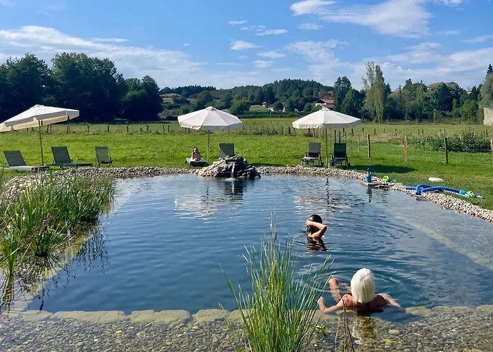 A cozinha totalmente equipada está equipada com máquinas de café/chá, bem como microondas, chaleira elétrica e refrigerador para fins de auto-serviço. A pousada também está localizada a 42 minutos de carro do aeroporto em Clermont-Ferrand. A acomodação oferece piscina no território, bem como a oportunidade de participar em aulas de ioga. Estão disponíveis instrução de ioga, se quiser se manter ativo. A presença de sala de jogos e área de jogo garante uma estadia agradável, enquanto um menu infantil oferecem opções saborosas aos jovens hóspedes.